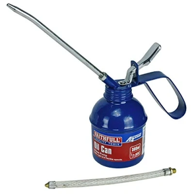 AmazonAn oil can with a high quality seamless drawn body made from thick gauge metal and enhanced by a durable enamel finish Supplied complete with both a 150mm rigid spout and a 150mm flexible spout. The powerful force-feed pump is crafted from solid brass to maximise performance and durability. Size: 300ml (1/2pint) Faithfull 5 Year Manufacturers Guanrantee