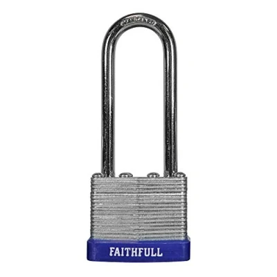 General description The Faithfull Laminated Steel Padlock offers high security for various applications. Manufactured from individually galvanised plates with a case hardened steel shackle, it is designed to withstand harsh conditions and provide reliable protection. The padlock features a durable brass cylinder mechanism with a stainless steel shackle spring, ensuring rust resistance and long-lasting performance. It is equipped with a safety bumper to prevent damage to surrounding surfaces, making it suitable for securing sheds, garages, luggage, lockers, toolboxes, gates, bikes, and other items around the home and workplace. Each padlock comes with three keys for convenience. Technical specifications Overall Width: 40mm Internal Shackle Dimensions: 20.5mm (width) x 62mm (height) Shackle Diameter: 6mm Locking Mechanism: 4-pin tumbler Security Level: 5/9 Body Material: Galvanised steel Shackle Material: Hardened steel Compatibility and accessories Compatible with standard keys and
