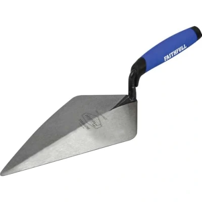 General description The Faithfull Prestige London Pattern Brick Trowel is designed for spreading, levelling, and shaping mortar or cement. It features a solid forged blade made from chrome vanadium steel, taper ground for added strength and flexibility. The polished, hardened edges provide excellent resistance to abrasion, ensuring durability during use. The trowel is well balanced with a high-lift soft grip handle for a comfortable grip and sufficient knuckle clearance. The handle includes a heavy-duty end cap built to withstand continuous tapping when working with bricks. This product is manufactured to high standards and comes with a 10-year guarantee. Technical specifications Blade Size: 275mm (11 inches) Material: Chrome vanadium steel Blade type: London pattern Handle: Soft grip with heavy-duty end cap MPN: FAI010 EAN: 5023969313900 Compatibility and accessories Suitable for use with mortar, cement, and similar materials Compatible with standard bricklaying tools and accessories