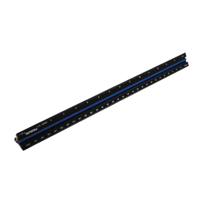 ManoManoGeneral description The Faithfull Prestige Tri-Scale Architect Rule is designed for precision in drawing and measurement. This heavy-duty tool features a unique triangular profile that keeps fingers safe from blades during cutting or scoring tasks. Made from durable aluminium using CNC machining, it has a black anodised finish for enhanced corrosion resistance and laser-engraved scales for outstanding measurement accuracy. It is commonly used to convert ratios with scales in technical drawings. Technical specifications Length: 300mm (12 inches) Scales: 1:5, 1:10, 1:50, 1:100, 1:200, 1:500 Material: Aluminium Finish: Black anodised Manufacturing process: CNC machined Compatibility and accessories Compatible with standard cutting and scoring tools Suitable for use in drafting, engineering, and architectural tasks Installation No installation required; ready to use out of the box. Usage Use for drawing, measuring, and converting ratios in technical drawings Utilise the triangular profile