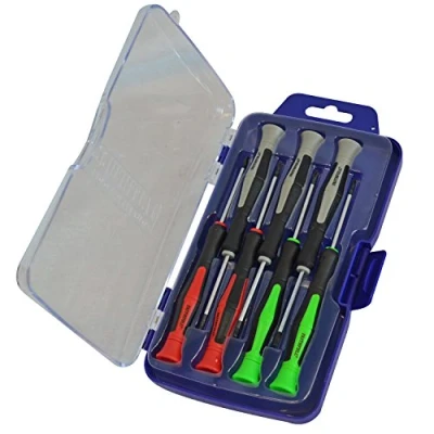 AmazonThe set consists of seven precision soft-grip screwdrivers designed for use on small screws The revolving body to permits single-handed use while leaving the other hand free when working on small items. Ideal for use in model making, electrical and precision engineering Contains: 2 x Phillips - PH00, PH0 x 50mm, 2 x Slotted - 2.5, 3mm x 50mm and 3 x Torx Star: T8, T9, T10 x 50mm Each Screwdriver has a cushion grip handle, colour coded for quick selection Faithfull 5 Year Manufacturers Guarantee, Manufacturer: Faithfull