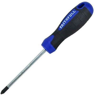 General description Faithfull Phillips Tip Screwdrivers are designed with a high-quality, correctly hardened and tempered chrome vanadium steel blade. The black phosphate tip ensures a long lifespan and is magnetized for screw retention. Each screwdriver features a bi-material soft grip handle that maximizes user comfort and provides a secure, non-slip grip. The handle is color-coded with a drive icon displayed on the end for easy identification. Technical specifications Type: Phillips Tip Size: PH2 Blade Length: 100mm (4 in) Material: Chrome vanadium steel Tip Finish: Black phosphate Compatibility and accessories Compatible with standard Phillips screws Designed for use with other Phillips screwdrivers and tools Installation No installation required. Simply select the screwdriver for your screw size and task. Usage Use to drive or remove Phillips screws Ideal for DIY projects, home repairs, and assembly tasks Ensure the tip fits the screw head properly for best results Other