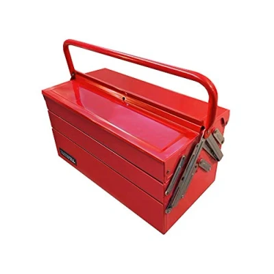 General description This rigidly constructed 5-tray toolbox measures 40cm (16in) and is designed to display its contents when open, while remaining extremely compact when closed. It features a tubular steel carry handle that facilitates easy lifting and lowering of the box. For added security, the lid can be secured with a padlock (not supplied).