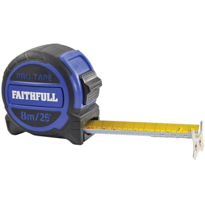The Faithfull Pro Tape Measure is a precision tool designed for professionals who require accuracy and efficiency in their work. With a blade length of 8 meters (26 feet) and a width of 32mm, this tape measure is engineered to facilitate a seamless measuring experience in various environments.