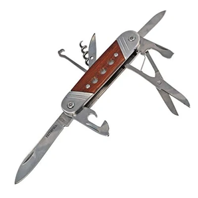 The Faithfull 8-in-1 Multi Blade Knife features a high quality, 57mm stainless steel main blade Features a 6mm flat driver / bottle opener, scissors, can opener, hook, corkscrew, awl and a small knife blade Fitted with an ergonomic hardwood handle and a hanging loop Faithfull 5 Year Manufacturers Guarantee, Weight: 0.25132697868 Pounds, Manufacturer: Faithfull