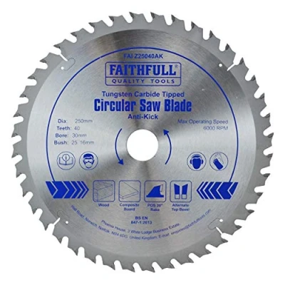 Faithfull FAIZ25040AK TCT Circular Saw Blade 250mm x 30mm Bore 40 Teeth Anti Kick