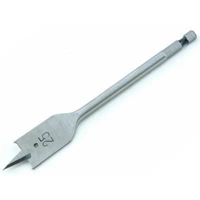 General description Faithfull Flat Bits are designed for fast, clean cuts in all types of timber, whether drilling with or against the grain. They feature a precision ground point and extended spurs for efficient cutting, making them ideal for both mains and cordless drills. Technical specifications Cutting Diameter: 25 mm Overall Length: 152 mm Shank Type: 1/4in hexagonal non-slip shaft Compatibility and accessories Compatible with adapters or chucks with a built-in quick-release feature A 300mm extension shank is available for use with flat bits of 16mm and above for deep drilling applications Other information