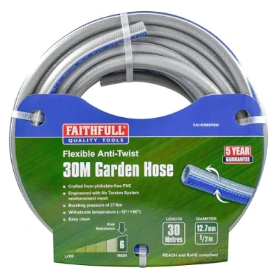 Faithfull Flexible Anti Twist NTS Hose 30M (98ft) 12.7mm (1/2in) Diameter Phthalate Free PVC 5 Layer Construction, Reinforced Mesh, Kink & Resistant Pipe