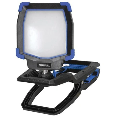 General description The Faithfull Power Plus LED Clip Light is a professional quality lighting solution designed for both commercial and domestic use. It features the latest LED technology, providing a high light output of 4,000 lumens while consuming only 40W of power. The light is constructed from heavy-duty ABS plastic with an impact-resistant lens, ensuring durability and protection against water and dust with an IP65 rating. A 360° swivel ball joint allows for easy adjustment of the light angle, making it versatile for various applications. Technical specifications Voltage: 220V-240V Current: 0.2A Power Factor: 0.96 LED Power: 40W Lumen Output: 4,000 Beam Angle: 120° LED Type: SMD Colour Temperature: 6,500K Cable Length: 5m (1.00mm²) IP Rating: IP65 Overall Size: 180 x 102 x 286mm Weight: 2.3kg Compatibility and accessories Fitted with an approved BS/CEE plug Available in either 240V or 110V Installation Heavy-duty clamp with an opening capacity of 82mm and 170N clamping force