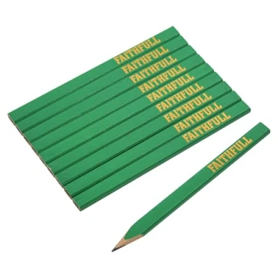 AmazonThe Faithfull Green Carpenters Pencils have been designed for general carpentry use and feature a hard graphite compound to create fine, visible lines for precise marking. They can be used to mark almost any material, except for some metals and polished or glazed surfaces. The pencils lay down a clear visible line regardless of the material's grain. Manufactured using sustainable and responsibly sourced FSC-certified wood. Set Contains: 10 x Hard Carpenters Pencils Grade: Green / Hard