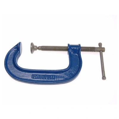 General description The Faithfull Heavy-Duty G-Clamp is designed for durability and strength, making it an essential tool for both metalworking and woodworking applications. Built to resist distortion, this clamp features a ribbed frame made from malleable SG iron, ensuring it is virtually unbreakable. Technical specifications Clamping Pressure: 2200 lbf Capacity: 254 mm (10 in) Throat Depth: 102 mm (4 in) Other information The spindle has acme cut threads for smooth operation and maximum clamping pressure. The frames have a powder-coated finish for increased corrosion resistance.