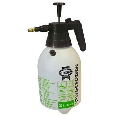General description A 2-litre hand sprayer with a powerful pump action, manufactured from shatterproof and frost resistant materials and equipped with a pressure release safety valve. Supplied complete with brass straight and up-spout nozzles for extra versatility. Suitable for use with most garden and household water-based chemicals and pesticides, the hand sprayer is ideal for use around the garden, greenhouse, and home.