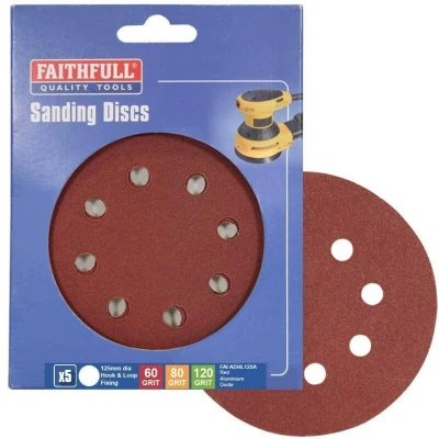 Faithfull Hook & Loop Plain Sanding Disc 125mm Assorted (Pack 5) FAIADHL125A