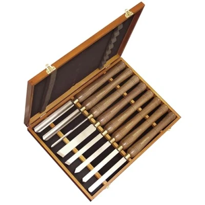 Faithfull HSS Turning Chisel Set of 8 in Wooden Presentation Box Suitable for Hard and Soft Woods, Walnut