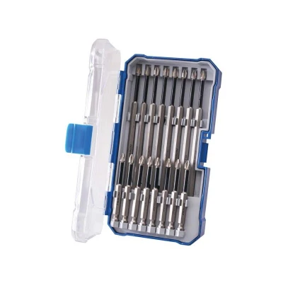 General description The Faithfull 16-piece Impact Long Bit Set includes high-durability bits designed for heavy-duty applications. These bits feature increased torsion zones and shock flex due to their longer length, providing enhanced performance and longevity. Made from specially engineered materials, they offer greater durability compared to standard bits. Each bit has a precision-machined tip to ensure an optimal fit, reducing the risk of screw stripping and cam-out. Technical specifications Number of pieces: 16 Bit lengths: 75mm and 150mm Types: Phillips (PH1, PH2, PH3) and Pozi (PZ1, PZ2, PZ3) Features: Increased torsion zones, shock flex, durable material, precision-machined tips Compatibility and accessories Compatible with impact drivers and power drills Suitable for driving screws in various materials Installation Insert the desired bit into the chuck of your impact driver or drill Ensure the bit is securely fitted before use Usage Use for driving screws in DIY, home