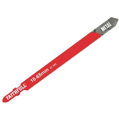 General description These Faithfull Straight Metal Cutting Jigsaw Blades T318A are designed for use with thin materials, making them ideal for cutting non-ferrous metals, luminous metals, and materials with fillings. Technical specifications Type: High Speed Steel ('T' Shaft) Cutting length: 110mm TPI: 21 Pack Quantity: 5 Other information MPN: FAIJBT318A EAN: 5023969253886