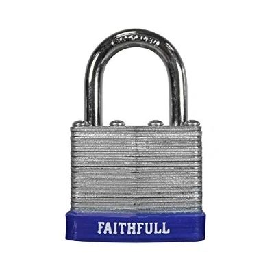 AmazonLaminated Steel Padlock 30mm 3 Keys High strength, brass cylinder mechanism that is accurately machined Manufactured using individually galvanised plates with a case hardened steel shackle Durable and rust resistant Manufactured using individually galvanised plates with a case hardened steel shackle. Each lock features a high strength, brass cylinder mechanism that is accurately machined, durable and rust resistant. Stainless steel shackle spring. All round safety bumper to protect surrounding paintwork., Weight: 0.5070632026 pounds, Manufacturer: Faithfull