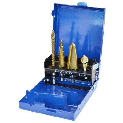 General description This is a 4-piece multi-function cutter set designed for various drilling and cutting tasks. It includes different tools suitable for precise work in DIY and home improvement projects. All tools are supplied in a durable metal case for easy storage and transport. Technical specifications Set includes: 6mm rotary rasp 4-12mm step drill 8-20mm taper drill 12.4mm countersink Size range: 4-20mm Compatibility and accessories Compatible with 1/4 inch drive power tools Supplied with a metal case for storage Installation Insert the desired tool into your compatible drill or rotary tool Ensure the tool is securely attached before use Usage Use the rotary rasp for shaping or grinding Use the step drill for enlarging or drilling holes in various materials Use the taper drill for tapered holes Use the countersink for creating conical holes or finishing edges Other information