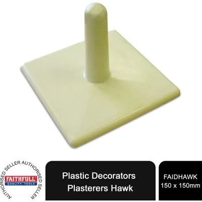 General description This is a Faithfull Plastic Decorators Hawk measuring 150 x 150mm (6 x 6 inches), designed for professional and DIY decorating tasks. It is suitable for holding and carrying materials such as plaster, paint, or other decorating compounds. The hawk is extremely lightweight, molded in polyurethane with a smooth surface finish, making it ideal for carrying a small quantity of mix close to the area being repaired. Technical specifications Material: Plastic Size: 150 x 150mm (6 x 6 inches) Model: FAIDHAWK MPN: FAIDHAWK EAN: 5023969209456 Compatibility and accessories Compatible with various decorating tools and accessories for professional use. Installation No installation required; ready to use out of the box. Usage Use to hold and transport plaster, paint, or other decorating materials. Ideal for smoothing and spreading materials on surfaces. Other information