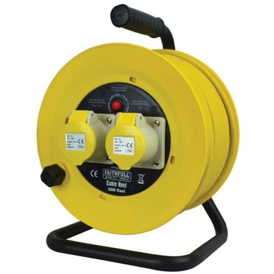General description The Faithfull Power Plus CR5016-TB Open Drum Cable Reel is designed for efficient power distribution on worksites. It features a robust steel frame construction with a carry handle for easy mobility. This cable reel is equipped with 50 meters of 1.5mm diameter cable and two outlet sockets, allowing you to run multiple power tools simultaneously. The sockets are protected with spring-loaded flaps to keep debris out when not in use, and a winding knob ensures easy and tangle-free reeling. Technical specifications Voltage: 110V Maximum load (Fully Unwound): 1760W (16 amp) Maximum load (Fully Wound): 660W (6 amp) Cable length: 50m Cable diameter: 1.5mm Manufactured to British Standard: BS EN 61242 Thermal overload protection included Usage All cable reels should be fully unwound before use to carry their recommended maximum load.