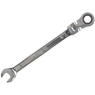 General description These Faithfull Chrome Vanadium spanners feature flexible ratchet heads that can turn through 180°, making them ideal for use in tight or hard-to-reach spaces. Each spanner is equipped with a 72 fine-tooth mechanism, allowing for precise operation with a 5° ratchet angle. An etched arrow illustration indicates the direction of torque, enhancing usability for various DIY and home improvement tasks. Technical specifications Size: 9mm Material: Chrome Vanadium steel Head type: Flexible ratchet head Ratchet mechanism: 72 fine-tooth Head movement: 180° for better access Ratchet angle: 5° for precise operation Compatibility and accessories Compatible with standard 9mm sockets and accessories Installation No installation required; ready to use out of the box Usage Use to tighten or loosen nuts and bolts in tight or awkward spaces Ideal for DIY projects, home repairs, and maintenance tasks Other information