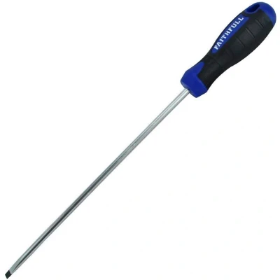 General description The Faithfull Soft Grip Screwdriver with a Parallel Slotted Tip is designed for durability and comfort. It features a high-quality, correctly hardened and tempered chrome vanadium steel blade, ensuring long-lasting performance. The black phosphate tip enhances durability and is magnetized for effective screw retention. The screwdriver is equipped with an ergonomic bi-material soft grip handle, providing maximum comfort and a secure grip during use. Each handle is marked with a drive icon for easy identification. Technical specifications Blade Length: 200mm Tip Size: 5.5mm Type: Parallel Part Number: FAISDP200 EAN: 5023969251318 Compatibility and accessories Suitable for use with standard slotted screws of 5.5mm size Installation No installation required. Usage Ideal for DIY, home improvement, and professional tasks involving slotted screws Use by inserting the tip into screw slots and turning manually Other information