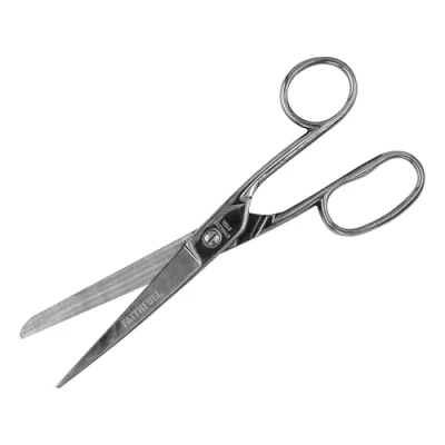 ManoManoGeneral description Faithfull Sewing Scissors are meticulously designed to offer versatility and ease of use. With a length of 200mm (7.9in), they provide an ideal balance between precision and control. Crafted from 3CR13 stainless steel, known for its excellent rust resistance, these scissors ensure durability and reliability over time. The 3.6mm blade thickness allows for precise cuts, making them suitable for detailed work. Additionally, the polished finish enhances their aesthetic appeal and contributes to a longer working life by maintaining the blade's edge and appearance. Weighing in at just 107 grams, these scissors are lightweight and designed to minimize fatigue, allowing for comfortable use over extended periods. Technical specifications Length: 200mm (7.9in) Weight: 107 grams Blade thickness: 3.6mm Material: 3CR13 stainless steel Usage Whether you're cutting fabric or other materials, these Sewing Scissors are the perfect tool for the job, offering a seamless blend of