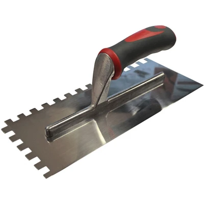General description This notched trowel is specifically designed for the application of adhesive prior to the setting of wall or floor tiles. It features a high-quality stainless steel blade that ensures durability and long-lasting performance. The tool is equipped with a full-size soft grip handle for user comfort during use. Technical specifications Blade size: 330 x 115 mm (13 x 4.1/2 in) Square notches: 10 mm Material: Stainless steel Compatibility and accessories Suitable for applying adhesive for wall and floor tiles Installation Ensure the surface is clean and dry before applying adhesive Use the notched side to spread adhesive evenly on the surface Usage Apply adhesive with the notched side of the trowel to create a uniform layer Use the straight edges for finishing and cutting off excess adhesive Other information