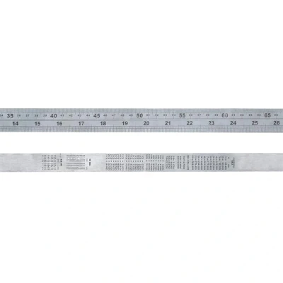 General description This Faithfull flexible stainless steel ruler measures 1 meter (39 inches) in length and 30mm in width. It features permanently etched metric and imperial readings for accurate measurements, making it ideal for woodworking, metalworking, and various DIY projects. Technical specifications Length: 1000mm (39 inches) Width: 30mm Thickness: 1.05mm Graduations: 16ths, 32nds, 64ths of an inch; 0.5mm and 1mm Material: Stainless steel Features: Etched measurement markings, conversion tables, hanging holes Compatibility and accessories Suitable for use in woodworking, metalworking, and DIY projects Compatible with other measuring tools and accessories for precise measurements Installation No installation required; simply use the ruler for measuring and marking. Usage Use for measuring lengths, widths, and distances in various DIY and home improvement tasks Utilize the conversion tables for quick reference between metric and imperial units Other information