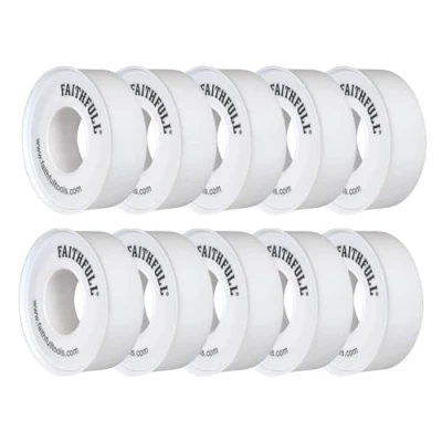 General description Faithfull P.T.F.E Tape is an essential tool for plumbers and heating engineers, designed to create a watertight seal on threaded joints. This invaluable tape is crucial for ensuring reliable sealing across all types of pipework, including oil and fuel lines, as well as portable water systems. Technical specifications Width: 12mm Length: 12m Pack size: 10 rolls Compatibility and accessories Compatible with various pipe fittings, including oil, fuel, and water lines. Installation Wrap the tape around the threaded joint in the direction of the thread. Ensure the tape covers the entire threaded area without overlapping excessively. Hand tighten the fitting, then use tools if necessary to secure the connection. Usage Use on threaded pipe joints to prevent leaks. Suitable for plumbing, heating, and fuel systems. Ensure the tape is applied evenly for a proper seal. Other information Satisfies BS 7786:2006 and BS 6920-1:2000. WRAS Approved for portable water.