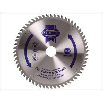 Faithfull TCT Cross Cut Mitre Saw Blade 216 x 30mm 60T NEG FAIZ21660ATB