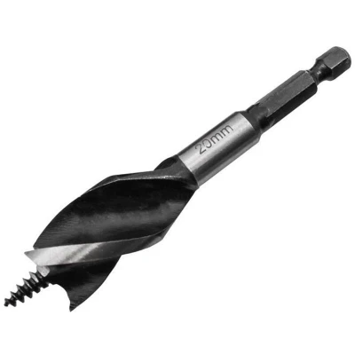 General description Faithfull Tri-Point Speed Auger Bits are high-quality tools designed for fast and clean drilling in all types of wood. They feature three spurs and cutting edges that produce perfectly round holes with minimal binding, making them ideal for use in tight or enclosed spaces due to their stubby length of 102mm (4 inches). Technical specifications Diameter: 20mm Length: 102mm (4 inches) Material: High-quality carbon steel Cutting edges: Ground and honed for precision Shank: 1/4 inch hex, impact-rated for use in impact drivers and drills Compatibility and accessories Compatible with impact drivers Compatible with corded and cordless drills equipped with a 1/4 inch hex chuck Installation Insert the 1/4 inch hex shank into the drill or impact driver chuck Ensure the bit is securely tightened before use Usage Use for drilling clean, precise holes in wood, especially in tight or confined spaces Apply steady pressure during drilling for best results Other information