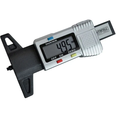 General description This Faithfull Digital Tyre Depth Gauge is designed for accurate tire inspection, featuring a large, clear LCD display for easy reading. It allows zero setting at any position and supports both metric and imperial measurements, making it a versatile tool for checking tread depth, brake shoes, and pad wear, ideal for vehicle maintenance and home improvement projects. Technical specifications Measurement range: 0-25.4mm (0-1 inch) Resolution: 0.01mm (0.0005 inch) Powered by a CR2032 battery Compatibility and accessories Compatible with standard tyre and brake wear measurements Supplied with a CR2032 battery Installation No installation required; simply turn on the device and calibrate if needed Usage Place the gauge’s measuring tip against the surface to be measured Press the zero button to calibrate at any position Read the measurement on the LCD display Other information
