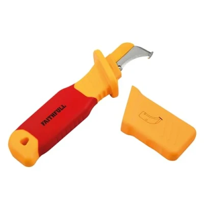 AmazonHigh-Quality 60 CRV Steel Blade – Offers exceptional sharpness and durability, delivering smooth, precise cuts on various cables and wires. Ideal for removing outer cable insulation, scoring and slitting thick sheathing and cleanly trimming insulation Safe & Precise Guiding Shoe – Helps the knife glide smoothly along the cable, prevents damage to the conductors, controls cutting depth, improves safety and makes stripping faster and more precise. Ergonomic PP & TPR Insulated Handle with Non-Slip Grip - Injected moulded handle provides a comfortable and secure grip for improved control and reduced fatigue, even during prolonged use. Safe & Reliable 1000V Protection – Individually tested at 10,000V before leaving the factory to guarantee a safe working limit of up to 1,000V, offering reliable insulation when working with electrical cables and components. Ideal for professional electricians, technicians and DIY users, ensuring dependable performance in daily applications. Protective Blade Guard – Helps prevent accidental cuts and damage when knife is not in use, enhancing safety and keeping cutting edge sharp for longer., Manufacturer: Faithfull