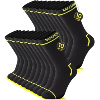 STRONG AND DURABLE: The toe and heel of the men's work socks are thickened and reinforced to better accommodate high-intensity work and sports scenarios, preventing the socks from breaking and preventing foot abrasions. Comfortable Sock Side: Mens work socks are made of high quality elasticated band, which won't mark on your calf or slip off, allowing you to sit comfortably all day long. FOOT CUSHIONING: The thickened terry cloth on the sole area of the men's work socks provides extra cushioning to relieve foot fatigue and prevent blisters, so you can work all day long with peace of mind. MOISTURE WICKING: The men's work socks are made of high quality cotton material and breathable mesh fabric, which ensures rapid heat dissipation, keeps your feet dry and comfortable, and prevents the growth of bacteria. VERSATILE USE: These men's work socks are ideal for machine shops, gardens, roads and other workplaces. They are also ideal for tennis, hiking and other sports.