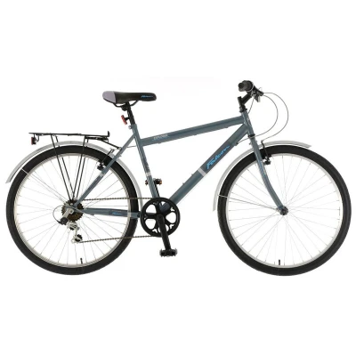 The Falcon Explorer Hybrid Bike is a comfortable and versatile city hybrid with 26″ semi-slick tyres, 6-speed Shimano gearing, sturdy steel frame, mudguards, and a rear luggage rack, making it ideal for adult riders tackling rough terrain with ease and style.