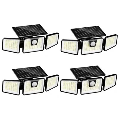 Falcon Set of 4 Solar Spotlights with 3 Black Heads Powerful White LED Light, Adjustable Motion Sensor, Ideal for Securing Garden, Terrace and Outdoors (H9.3 cm)