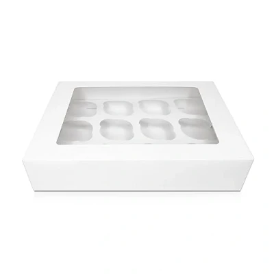🧁 CRYSTAL-CLEAR WINDOW - The transparent window on top of the takeaway cake boxes allows your cupcakes or muffins to be the star of the show. Showcase your beautifully decorated cupcakes, enticing your customers or guests with a tempting sneak peek! 🍰 REMOVABLE INSERTS - Each 12 hole cupcake box includes inserts with 12 perfectly sized cavities, measuring approximately 6.4cm in diameter. These removable inserts ensure that your cupcakes or muffins stay securely in place, preventing any unwanted shifting during transit! 🚚 SECURE TRANSPORTATION - Keep your cupcakes fresh, intact and presentable with our cupcake carrier boxes, which are expertly crafted with an elegant, sturdy design to help you hold, store, transport and showcase your sweet creations with elegance and convenience! ⭐ VALUE PACK - Each of our pack includes 10 cup cake boxes with inserts. The dimensions are 13"L x 10"W x 3" H, providing ample space for your cupcakes or muffins without taking up too much room. Easy to assemble, pops up effortlessly, making packaging a quick and stress-free task! 👍 SUPERIOR QUALITY – Made from the finest quality cardboard material, our cupcake or muffin boxes are safe, sturdy, non-toxic, BPA-free, lightweight, compact and durable enough to keep your treats securely contained at all times!