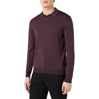 FALKE Men's Button Polo Shirt, Men, Polo, 60004, burgundy, L