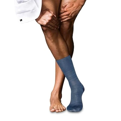Single pack of socks in a silk and cotton blend extra soft on the skin, excellent with formal shoes and a suit or tuxedo; fine socks with a classic woven stripe pattern excellent with any business or dress outfit, for example at a wedding Luxurious thin socks for man, soft and with an unique sheen that gives a special elegance; the flat seam at the toes means you won't feel any pressure; give yourself a treat or use the socks as a gift for Christmas, Easter, a birthday or Father's Day Comfortable men's socks in a mid-calf length covering the leg half way up to the knee; to wear with any shoe type e.g. trainer shoes, mocassins, dress shoes; excellent shape and colour retention even after repeated washing; wash in wool-programme Special and innovative gender-specific knitting techniques guarantee a slip-free and a wrinkle-free fit, a high wearing comfort, a longer durability and protect against pressure points Model number: 12539; sizes available: 39-40 (UK 5.5-6.5), 41-42 (UK 7-8), 43-44 (UK 8.5-9.5), 45-46 (UK 10-11), 47-48 (UK 11.5-12.5) FALKE, a family business founded in 1895, stands on a firm foundation of values: unconditional quality, the highest craftsmanship, modern and innovative products for generations