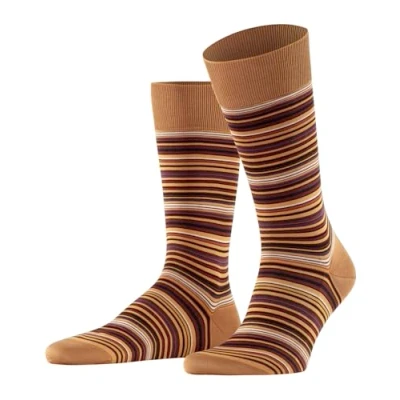 Single pack of comfortable socks for men in mercerised fil d'Écosse cotton blend extra soft on the skin and with unique colour brilliance; with multicolour stripe pattern, fine ribbed cuff and designer logo on sole Thin and elegant socks to wear all year round with dress or casual looks or at work, with a costume; high-quality construction with reinforced heel and toe and flat seam in the toe area for a high wearing comfort; gift idea for Christmas, a birthday, Father's Day Comfy and light socks in a mid-calf length covering the leg half way up to the knee; looks excellent with any shoe type e.g. trainers, brogues, mocassins and with excellent shape and colour retention even after repeated washing; machine wash 40°C gentle Special and innovative gender-specific knitting techniques guarantee a slip-free and a wrinkle-free fit, a high wearing comfort, a longer durability and protect against pressure points Model number: 14041; available in sizes: 39-40 (UK 5.5-6.5), 41-42 (UK 7-8), 43-44 (UK 8.5-9.5), 45-46 (UK 10-11) FALKE, a family business founded in 1895, stands on a firm foundation of values: unconditional quality, the highest craftsmanship, modern and innovative products for generations
