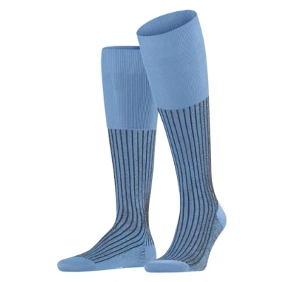 FALKE Men's Oxford Stripe M KH Cotton Long Patterned 1 Pair Knee High Socks, Blue (Cornflower 6554), 10 11