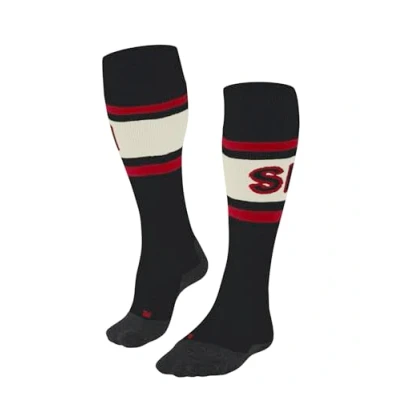 Ski socks made from quick-drying functional material and insulating merino wool for good thermal insulation; the moisture-wicking 3-layer construction keeps your feet dry and blister-free The breathable ski socks with soft, flat seams on the toes and medium-thickness padding offer comfort and control; the optimal fit guarantees you maximum comfort in use To prevent pressure points and for optimum comfort during winter sports, the ski sock ends above the edge of the boot; for a crease-free fit, we recommend the smaller size if you are in between sizes Special knitting techniques adapted to the gender and anatomical differences of the right and left foot ensure a high comfort, a wrinkle-free fit, a long durability and protect against pressure points The mulesing-free wool and functional material are durable and resistant to wear and tear, making them ideal for use in ski socks that are frequently washed and worn FALKE, a family business founded in 1895, stands for unconditional quality, the highest craftsmanship, innovative and functional products and plastic-free packaging