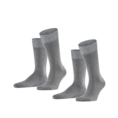 FALKE Men's Happy Double Pack M So Cotton Plain 2 Pairs Socks, Grey Light Melange 3390, 11.5 14