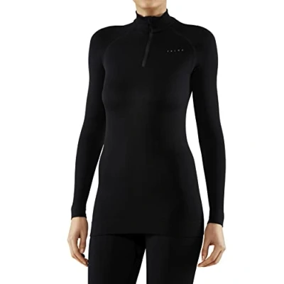 FALKE Men's Maximum Warm High Zip Neck M L/s Sh Functional Yarn Quick Dry 1 Piece Base Layer Top, Black 3000, S