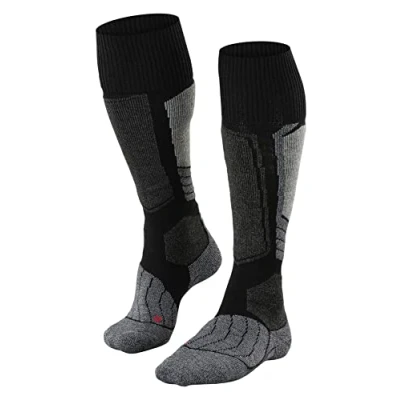 Ski socks made from quick-drying functional material and highly insulating merino wool; the breathable material and triple layer sole construction keep your feet dry and blister-free Breathable ski socks with extra thick padding for maximum thermal insulation and comfort; ski-specific padding on the shin and ankle for balanced protection To prevent pressure points and for optimum comfort during winter sports, the ski sock ends over the edge of the boot; for a crease-free fit, we recommend the smaller size if you are in between sizes Special knitting techniques adapted to the gender and anatomical differences of the right and left foot ensure a high comfort, a wrinkle-free fit, a long durability and protect against pressure points The mulesing-free wool and functional material are durable and resistant to wear and tear, making them ideal for use in ski socks that are frequently washed and worn FALKE, a family business founded in 1895, stands for unconditional quality, the highest craftsmanship, innovative and functional products with environmentally friendly packaging