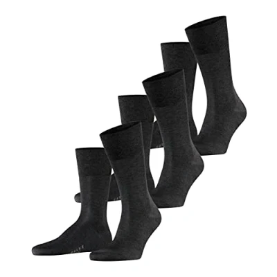 FALKE Men's Tiago Multipack M So Fil D'Écosse Cotton Plain 3 Pairs Socks, Grey Anthracite Melange 3095, 8.5 9.5
