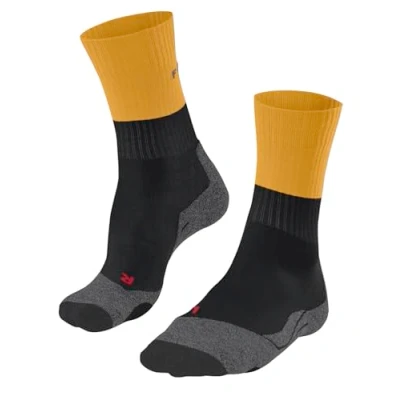 These hiking socks for medium mountain ranges are made of odour-inhibiting, breathable wool and functional material and keep your feet dry thanks to the triple layer moisture-absorbing sole The medium-thickness padding in the areas most subject to wear in these thermal socks offers you a high level of comfort; the flat toe seam prevents pressure points, rubbing and blisters For walking or hiking, these trekking socks offer you secure shoe contact and a high level of cushioning in hiking shoes (categories A-B); we recommend the smaller size if you are between sizes Special knitting techniques adapted to the gender and anatomical differences of the right and left foot ensure a high comfort, a wrinkle-free fit, a long durability and protect against pressure points The high-quality merino wool warms your feet in cold temperatures and cools them in warm temperatures; these all-season sport socks accompany you on your outdoor activities in all weather conditions FALKE, a family business founded in 1895, stands for unconditional quality, the highest craftsmanship, innovative and functional products with environmentally friendly packaging
