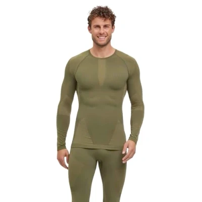 FALKE Men's Warm Round Neck M L/s Sh Functional Yarn Quick Dry 1 Piece Base Layer Top, Green Herb 7754, XXL