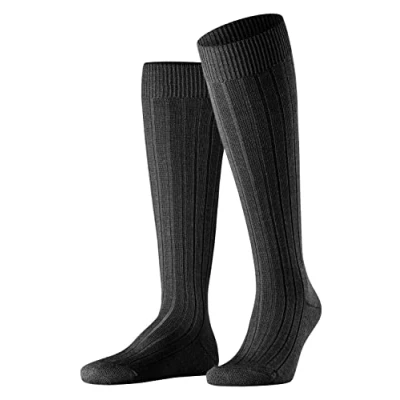 Single pack of heavy-duty comfortable long thermal socks for men in a warm and breathable merino wool blend soft on the skin; plain pattern with chunky ribbed texture; designer logo on sole; available in 5 sizes for the best fit from UK size 5.5 to 12.5 Thick knee-highs for winter; solid design for any casual look, can also be excellent work socks or ideal to wear for Oktoberfest; with thick breathable cushioned sole; high quality construction with reinforced stress zones for an optimum durability, flat whipped seams for pressure-free toes Comfy thick winter socks in a knee length covering the calf up to the knees; ideal boot sock or sock for walking in winter outdoor; excellent shape and colour retention even after repeated washing; wash in wool-programme Special and innovative gender-specific knitting techniques guarantee a slip-free and a wrinkle-free fit, a high wearing comfort, a longer durability and protect against pressure points Model number for the FALKE men's Teppich Im Schuh knee-high socks: 15410; available in sizes: 39-40 (UK 5.5-6.5), 41-42 (UK 7-8), 43-44 (UK 8.5-9.5), 45-46 (UK 10-11), 47-48 (UK 11.5-12.5); product tested for harmful substances and certified according to Standard 100 by OEKO-TEX 96.0.9647 HOHENSTEIN HTTI FALKE, a family business founded in 1895, stands on a firm foundation of values: unconditional quality, the highest craftsmanship, modern and innovative products for generations